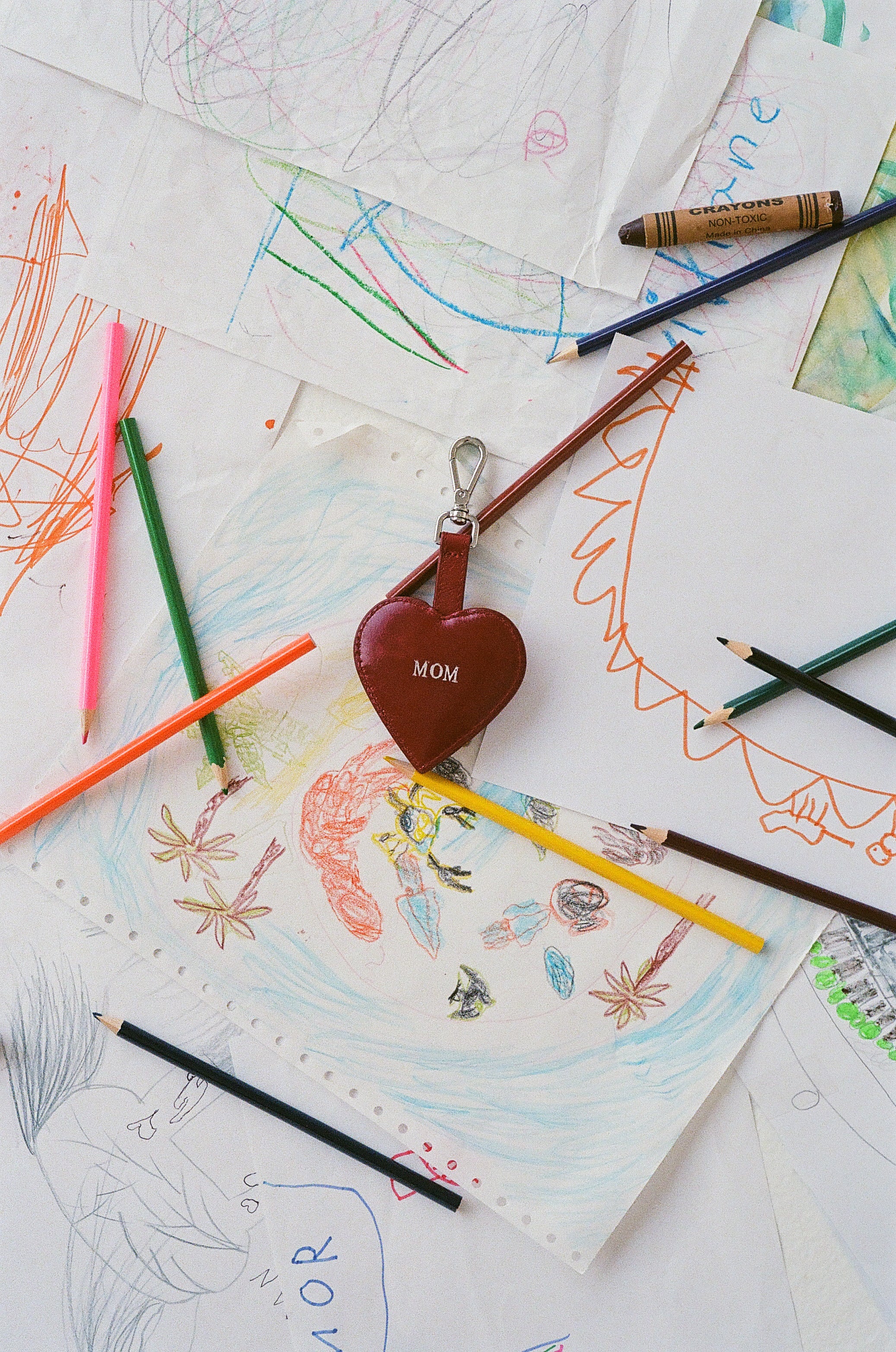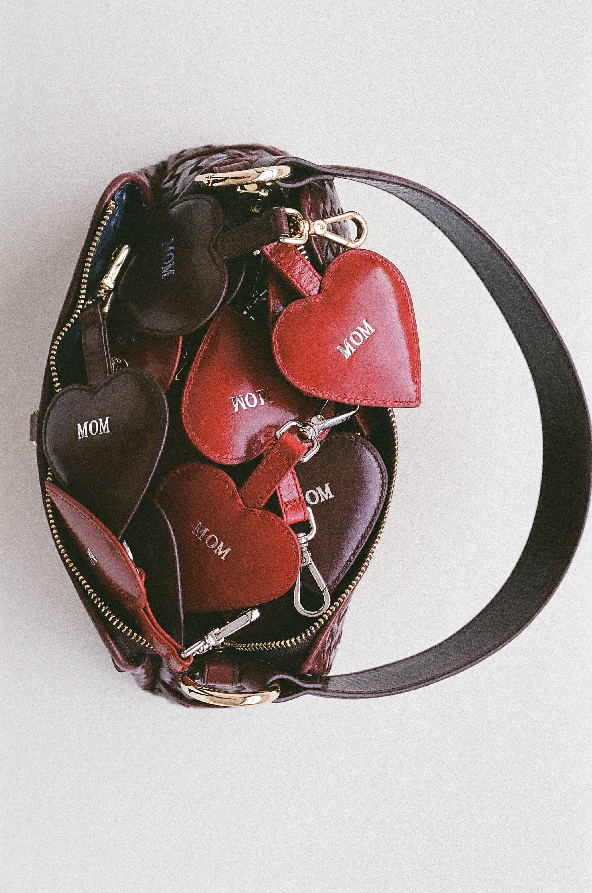 Fejr Mors Dag med noget helt særligt: et limited edition charm, formet som et hjerte i læder, håndtrykt med ordet MOR i sølvfolie. Hvert charm er unikt, da trykket varierer, hvilket gør det ekstra specielt.