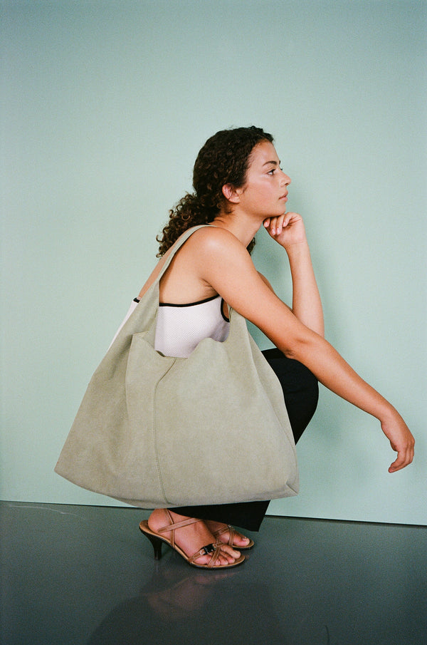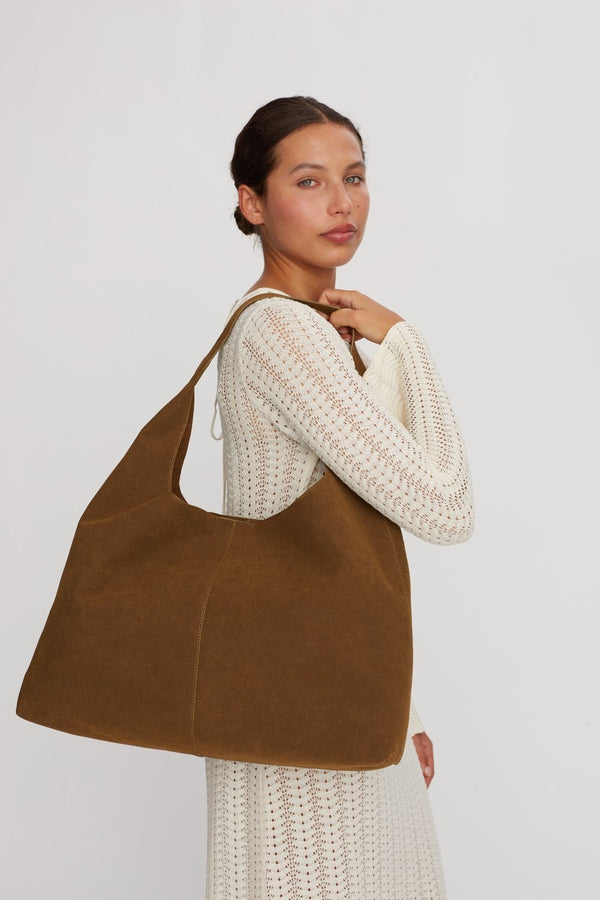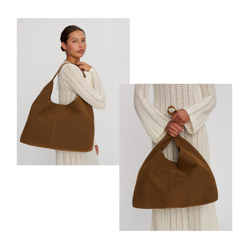 Et udvalg af vores veganske tasker har en struktureret overflade, mens andre er udført i det blødeste, veganske PU-ruskind.