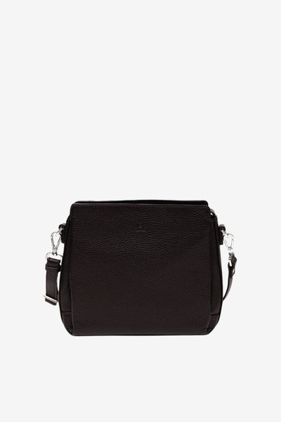 Stilren og praktisk crossbody-taske med elegante sølvbelagte fittings. Tasken har lynlåslukning i toppen og en justerbar skulderrem, der kan forlænges op til 140 cm. Bagpå findes en ekstra lynlåslomme til småting. Indvendigt har tasken tre rum, hvor det midterste rummer både en lynlåslomme og en åben skindlomme, der giver optimal organisering.