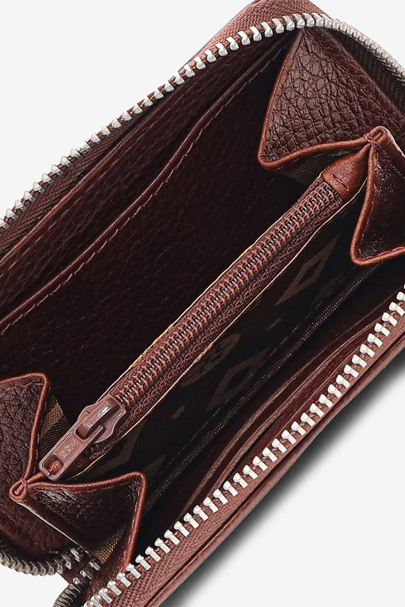 En lille og praktisk pung med et enkelt design, perfekt til en håndtaske eller skuldertaske. Den har to rum, adskilt af en smal lynlåslomme til mønter. Derudover er der et smalt rum på den ene side og lommer til tre kort på den anden. Lukkes med lynlås.
