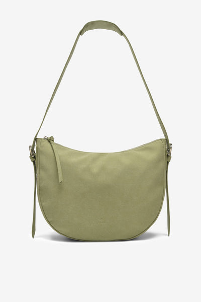 Lydia er en elegant skuldertaske, der forener stil og funktionalitet. Fremstillet i højkvalitets, vegansk PU-ruskind, er den en del af vores Hello I'm Vegan kollektion, og dens bløde, buede form giver et tidløst, sofistikeret udtryk.