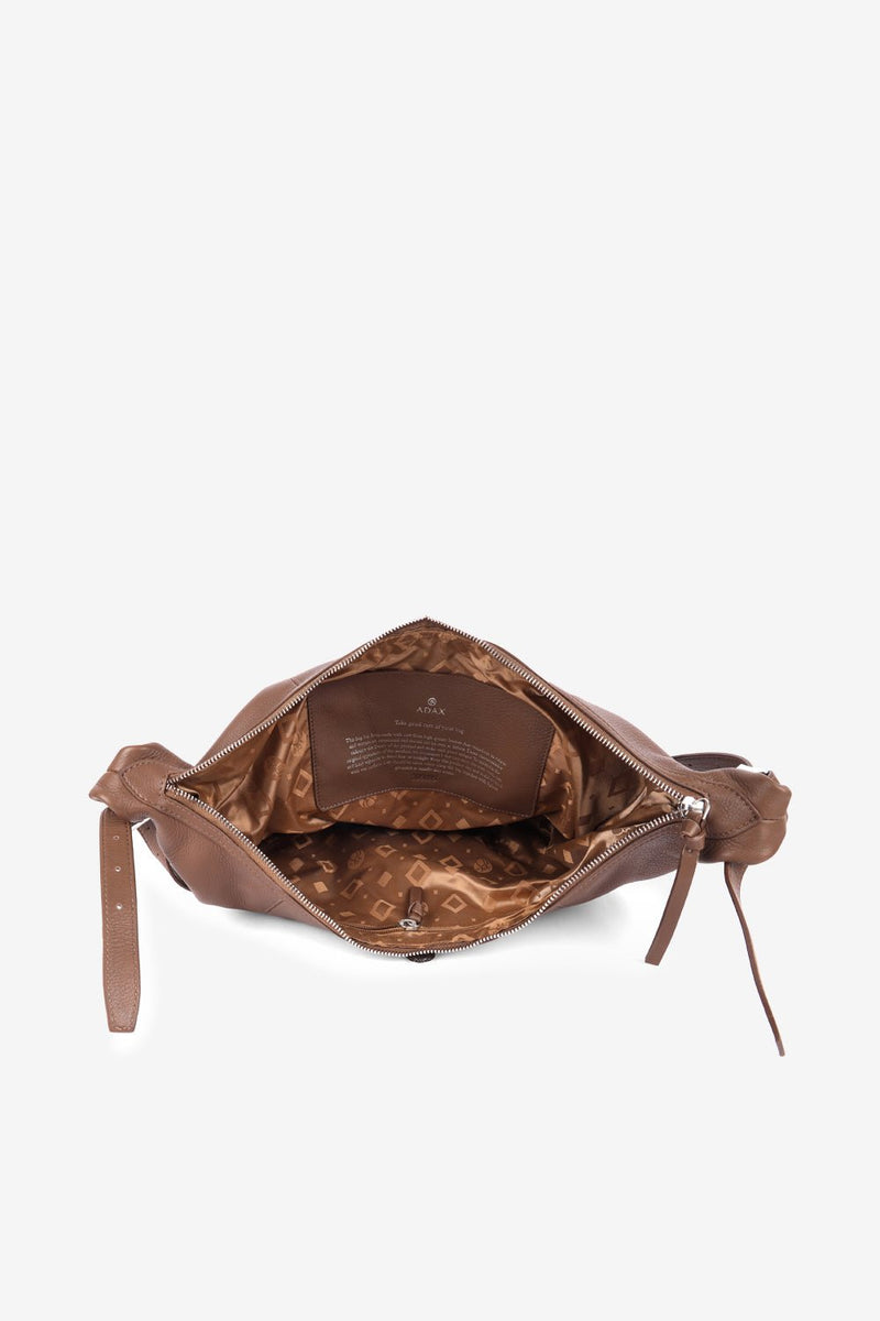 Det anbefales at behandle læderet regelmæssigt med Adax balsam og/eller Adax Protection Spray. Adax Balsam: Tør forsigtigt tasken med en fugtig klud, og lad den tørre. Brug den medfølgende svamp til at påføre et tyndt lag balsam i bløde, jævne strøg. Afslut med at fjerne overskud med en ren klud. Adax Protection spray: Tør din taske med en fugtig klud, og lad den tørre helt. Hold derefter sprayflasken cirka 10–15 cm fra tasken, og påfør et jævnt lag over hele tasken. Lad herefter tasken tørre